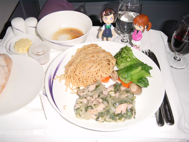 さぁ、寝る前にごはんだぁ〜 機内食の時間だよぉ〜 |