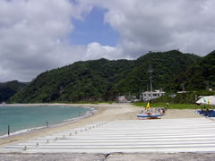風が強くて、出来なかったみたい。 あっちの海岸で準備はしていたみたいだよ。 |