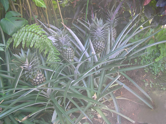 お、モモ子みろよ。 パイナップルがなってるぞ。パイナップルはこんな風に実をつけるんだな。 |