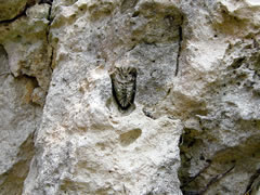 琉球石灰岩っていう石灰岩を使っているんだって。場所によっては化石見たいのも見られるよ。 ボクはあまり詳しくないから、本当に化石かどうかわからないけどね。 |
