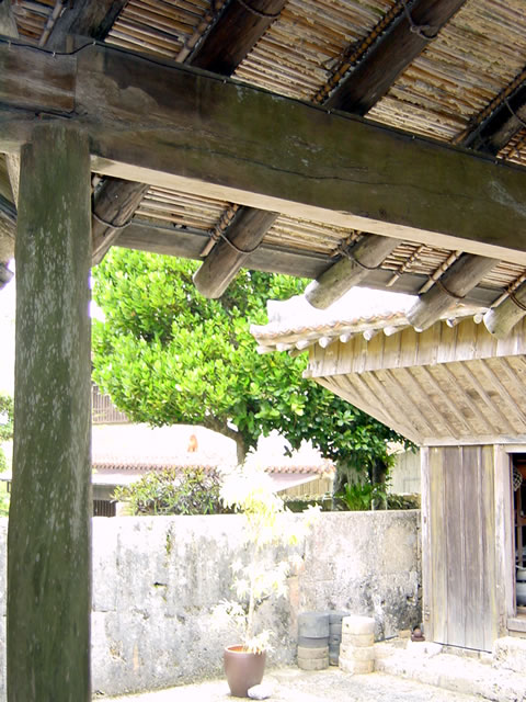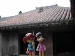 沖縄の伝統民家だよ。 ねねね、みてみて酒瓶イパーイだよ。お兄ちゃん喜びそう。 |