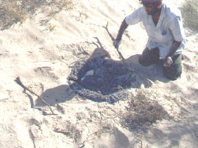 焼けた砂の上にポン!