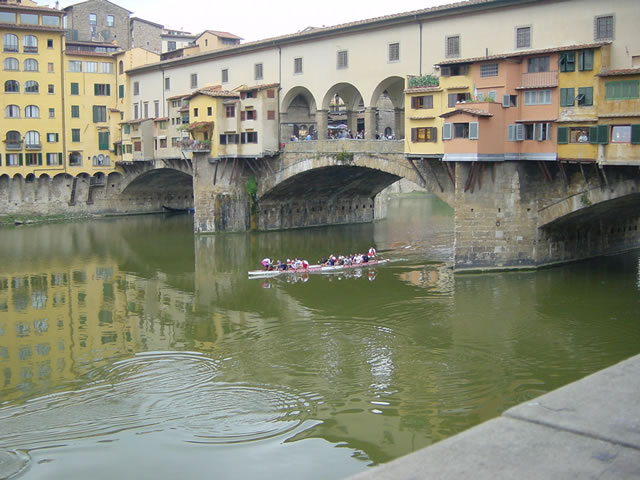 あの橋が有名な「ヴェッキオ橋」ね。フィレンツェで一番古い橋なんだよ。 |