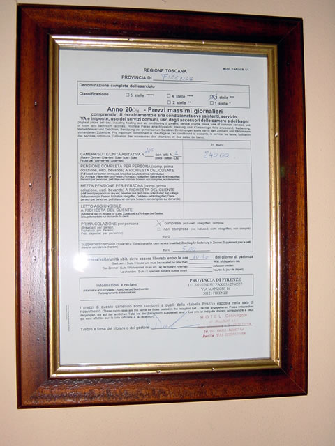 イタリアではホテルの格付けが★〜★★★★★まであったと思います。すべてのホテルには格付けが入り口に表示されています。