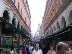 この先が、ヴェネツィア大運河にかかる3つの橋のうち、一番有名なリアルト橋だよ。 |